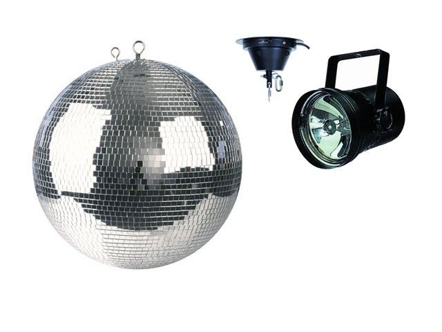 Pack Boule à Facettes 30cm avec son projecteur, des filtres de couleurs ainsi que son moteur pour un effet disco parfait.