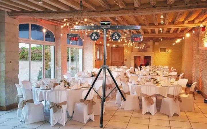 Barre de 6 jeux de lumières autonomes sur pied composée de deux projecteurs d'ambiances, deux effets à led, un laser multipoint rouge et vert, quatre led blanche et UV le tout prémonté sur une barre et synchronisé au rythme de la musique